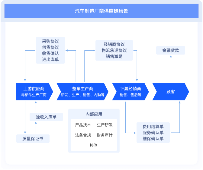 汽车业务签署全过程数据实时上链,为销售纠纷、服务争议提供法律保障。