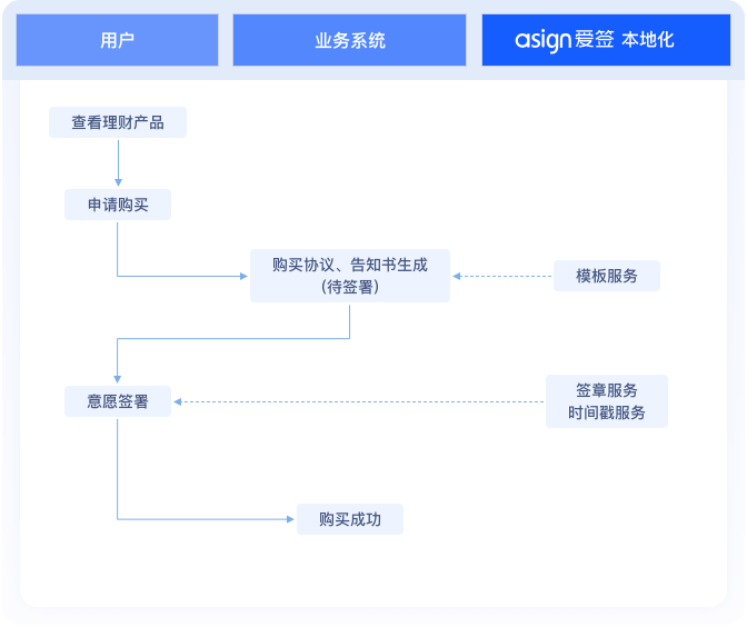 客户选定理财产品后,系统生成含详情与风险等级的电子合同。爱签平台完成匹配确认与签署,同步生成合法电子凭证。